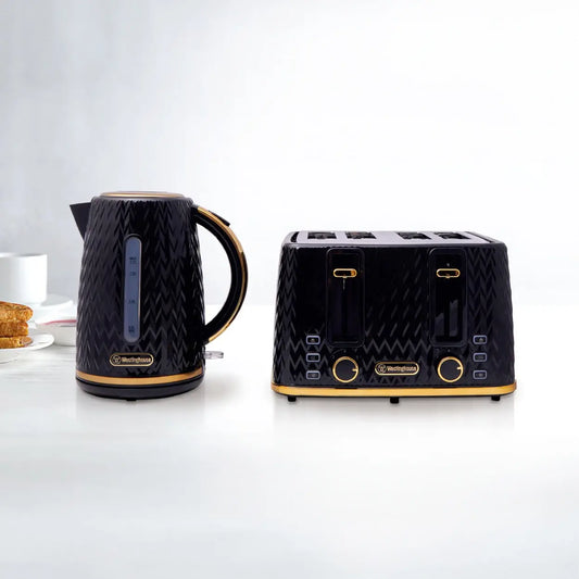 Westinghouse Breakfast Gift Makers Pack | 1.7L Kettle and 4 Slice Toaster | Hot Water Jug Bread Toasting Browning
