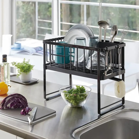Yamazaki Tower 2 Tier Dish Rack | Space-Saving | Stylish Black | 360 degree drainage | Easy Install | Max Capacity 7.9 kg