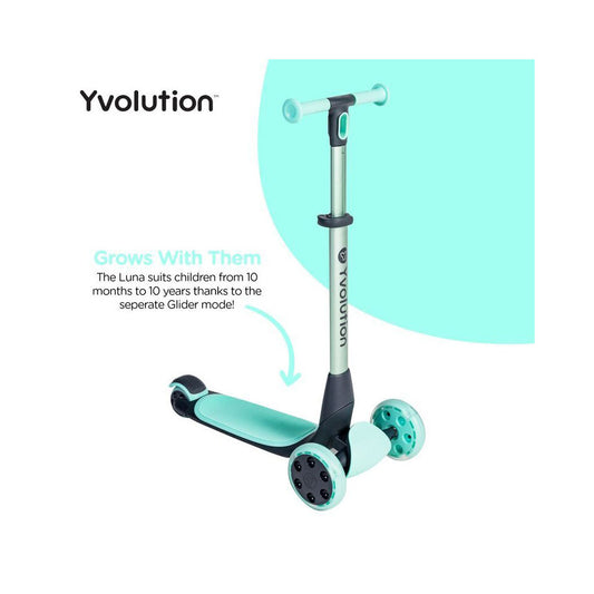 YVolution Glider | Luna 5-in-1 Scooter & Ride-On Kids Toy | Green 10m+