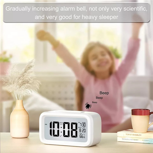 Digital Bedside LED Snooze Alarm Clock Time Temperature Day/Night Desktop Decor