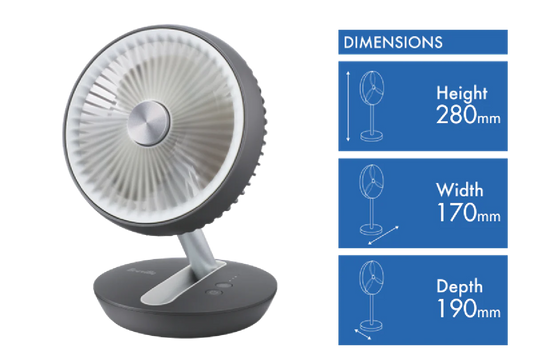 Breville Cordless Desktop Fan | Electronic 4 Speed Cooling Air Cooler Foldable