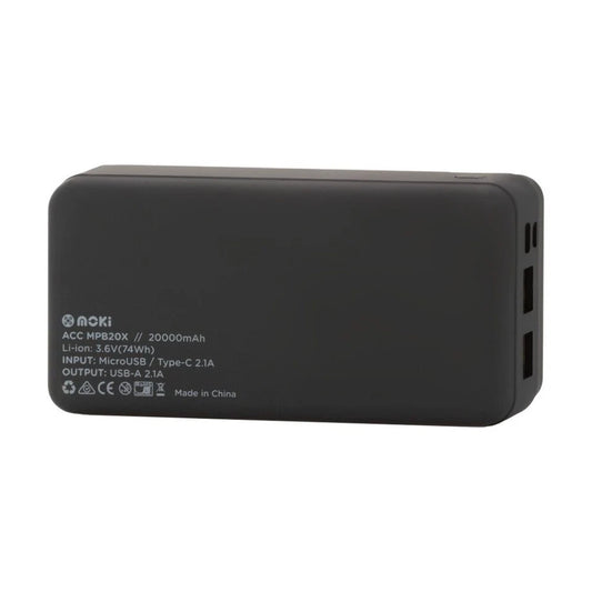 Moki Portable Travel Power Bank USB-C/USB-A Compact Black 20000mAh