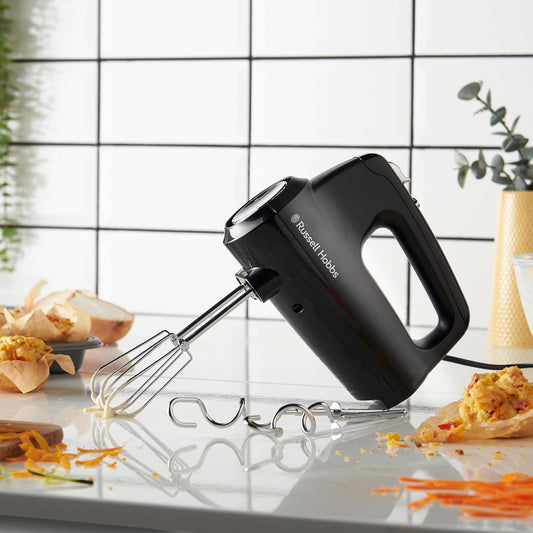 Russell Hobbs Hand Mixer 5 Speed | Egg Batter Whisk Batter Mixer Dough Hooks | Portable Kitchen Mixing