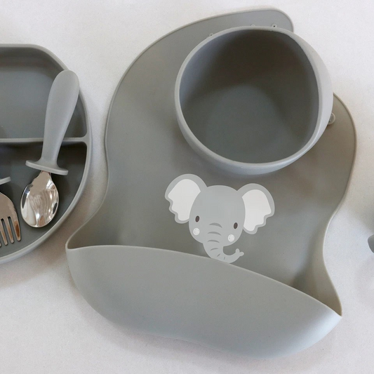 Splosh Baby Elephant Silicone Feeding Bib Adjustable Food Catcher 24cm GRY