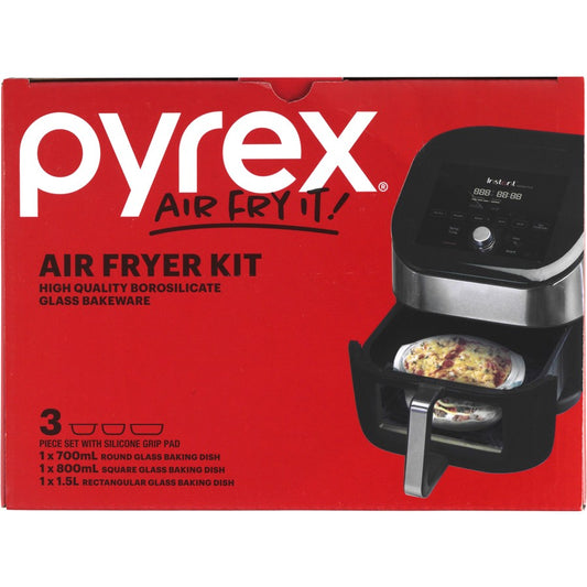 Pyrex Air Fryer Glass Baking Set | 3 Piece Set Bakeware Baking Dish Cooking Glassware | Includes Silicone Grip Pad