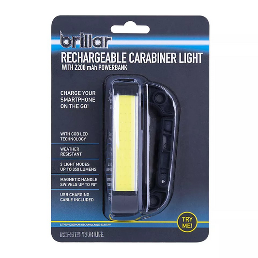 Brillar Rechargeable LED Light & Powerbank | 3-mode Magnetic Handle Carabiner | 90 Degree Swivel
