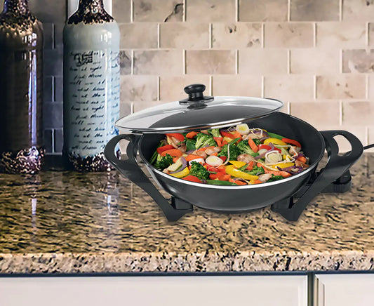 Electric 4.5L Family Wok Heated Cooking Pan Deep Frying Pan | Non-Stick 1500W