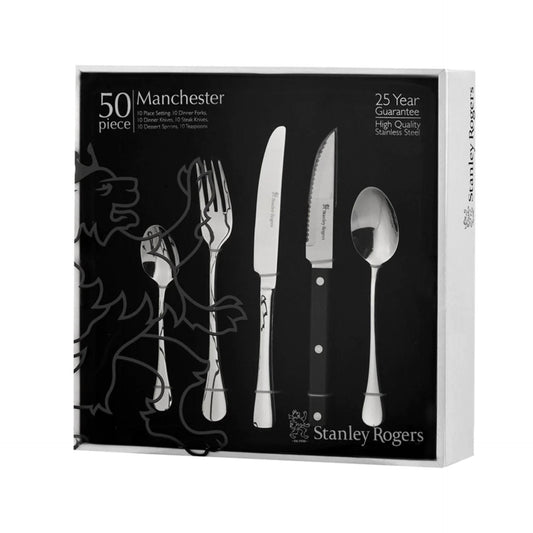 Stanley Rogers 50 Piece Cutlery Set | Dinner Forks, Knives, Dessert Spoons, Teaspoons & Steak Knives