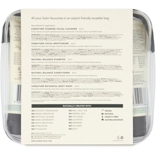 Sukin Portable Facial Skin Care Travel Pack 150ml | Facial Cleanser, Moisturiser, Shampoo Conditioner, Body Wash