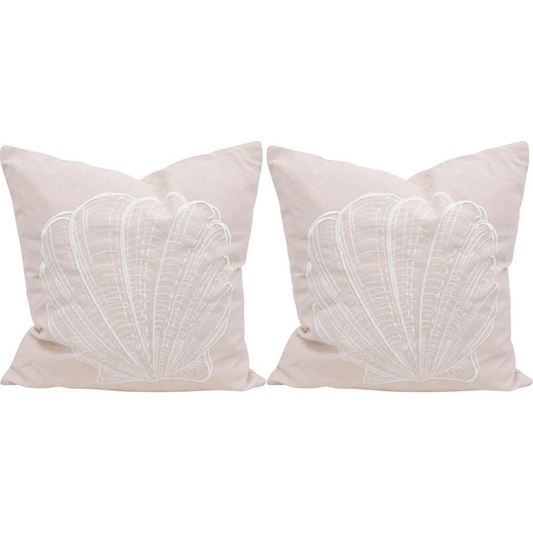 Natural Fan Shell Cushions | 2PK LVD Linen Look Pillows | 43x43cm
