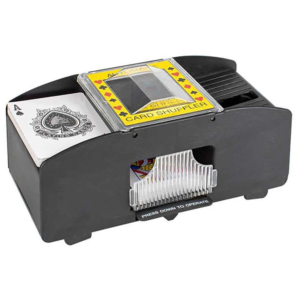 The automatic card shuffler is perfect for poker night with friends. Take the hard work out of dealing by adding the cards to the shuffle drawers, pressing down on the button, and watching the magic happen!
