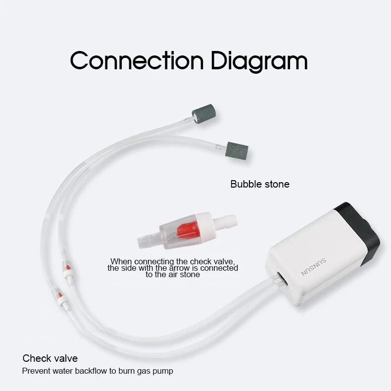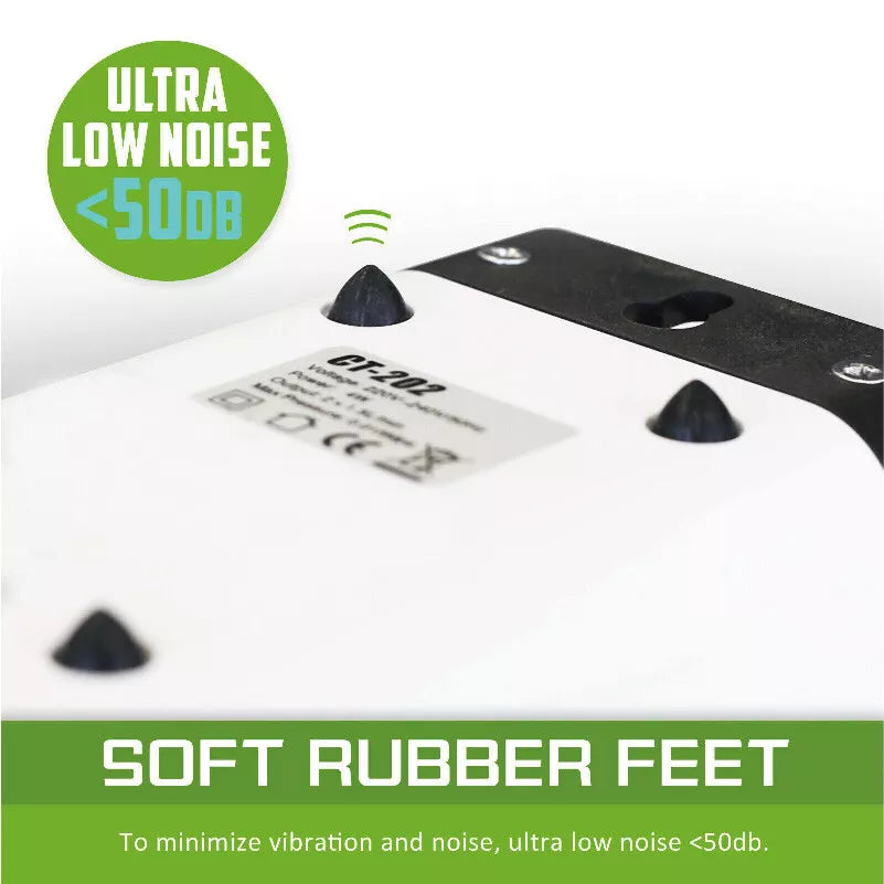 The dual air outlets allow you to create a more even air flow and maximise the effectiveness in spreading oxygen. Thanks for the Cube-Shaped design, the compressor of this air pump is very quiet and the new design added with rubber feet keeps the vibration level to the minimum. The simple, yet efficient design also saves you precious space and also increases the service life.
