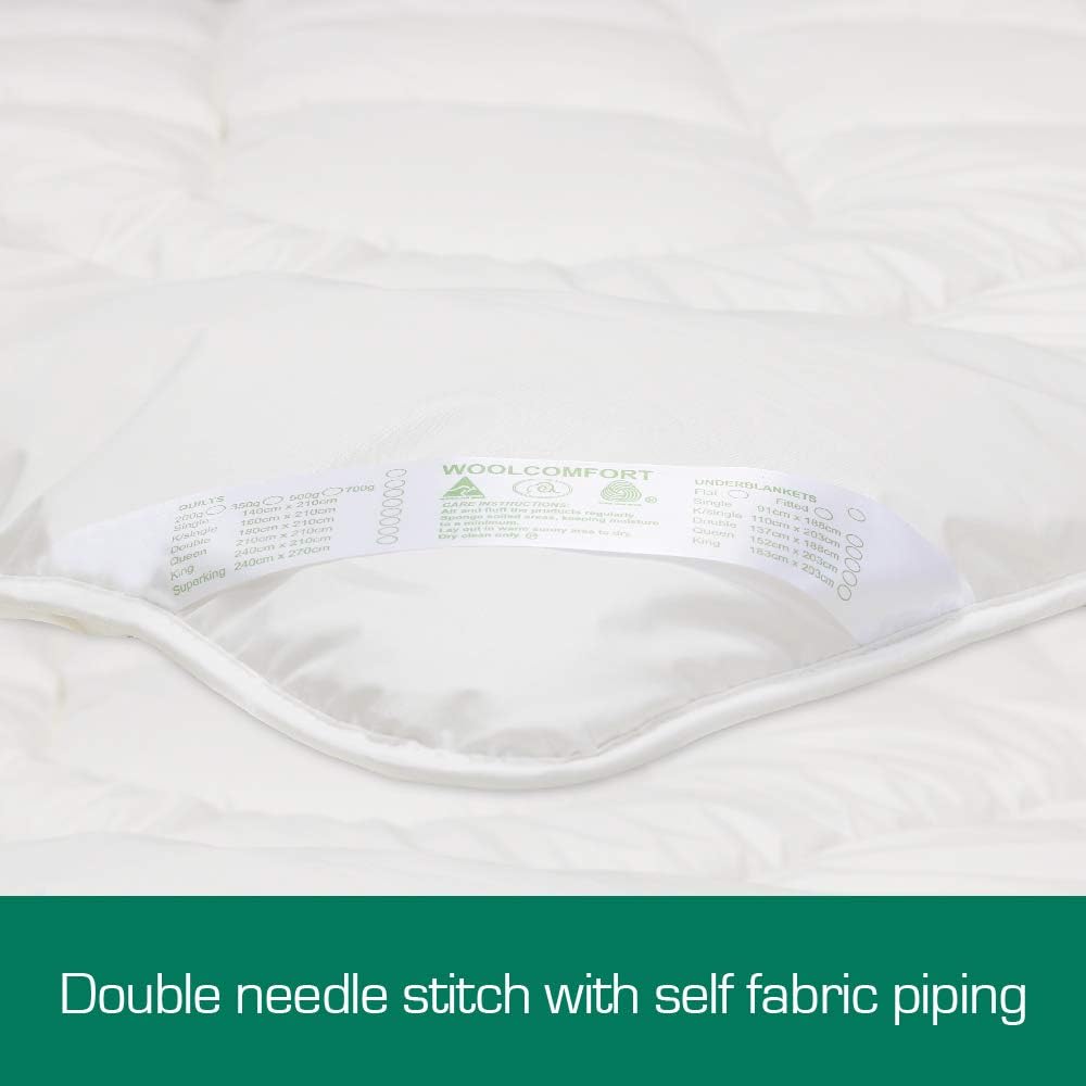 Experience luxurious comfort with our Australian Made Merino Wool Queen Quilt (180x210cm). Woolmark Certified with 100% Pure New Australian Premium Wool filling and 400 Thread Count Superfine Cotton Japara casing.