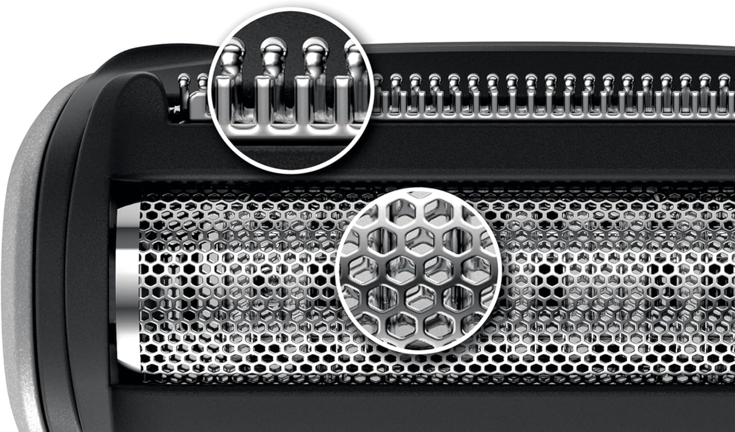 - The bi-directional trimmers cut longer hairs, which are shaved by the foil for a closer result. 1 comb included for a natural 3mm trim.