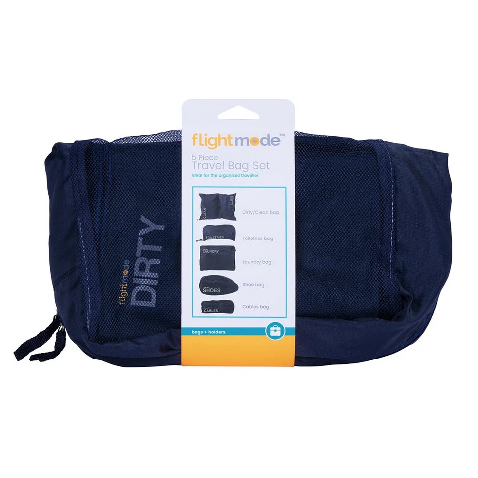 Flightmode Polyester Travel Bag | 5 Pc - 31cm/31cm/32cm/50cm/26cm | Travel Storage Bag Set Black