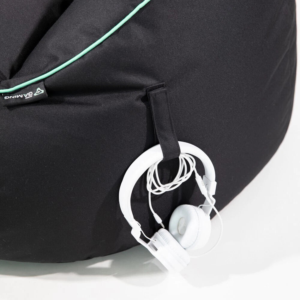 Laser Gaming Fabric Bean Bag | Game Sofa TV Chair Lounger w/ Headphone Strap & Side Pocket Black