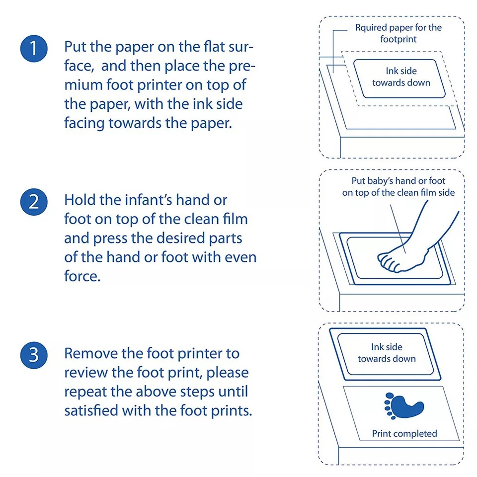 Simply press your baby's hand and foot separately onto the included clean-touch ink pad and print card to reveal your baby's prints.